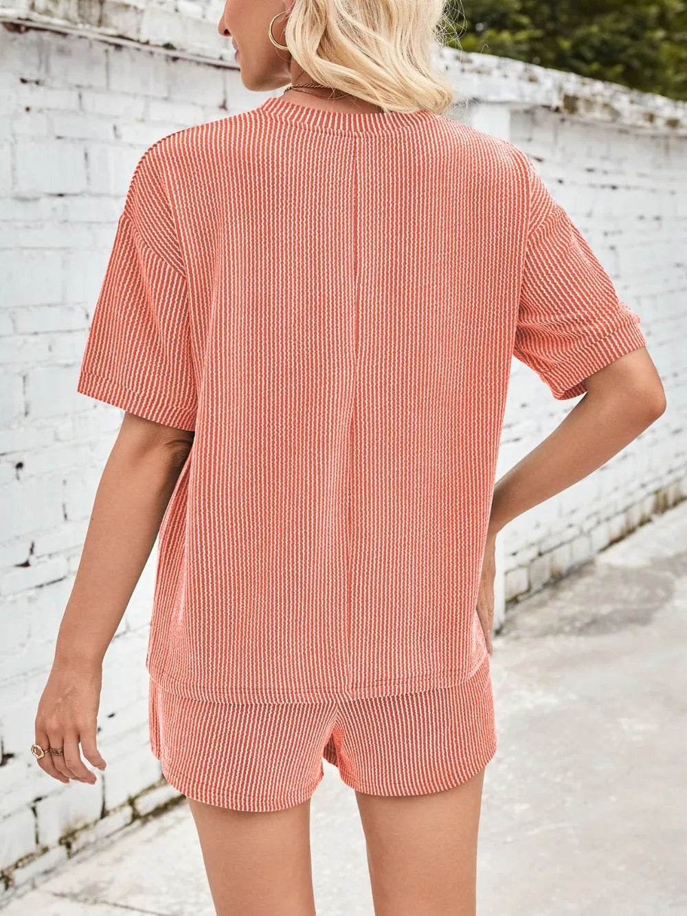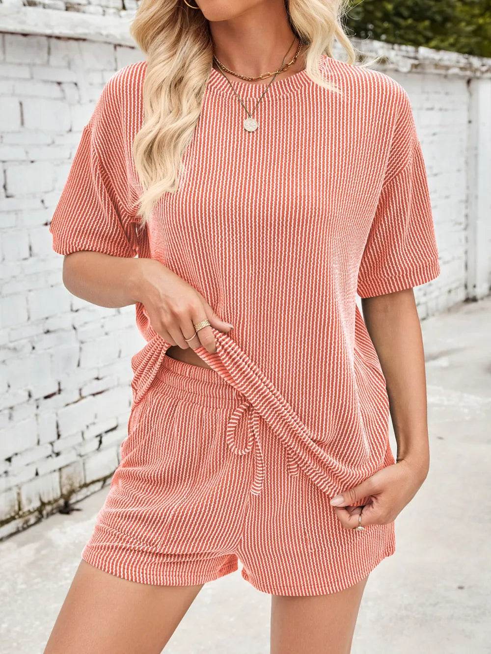 Lovelet Round Neck Half Sleeve Top and Drawstring Shorts Set