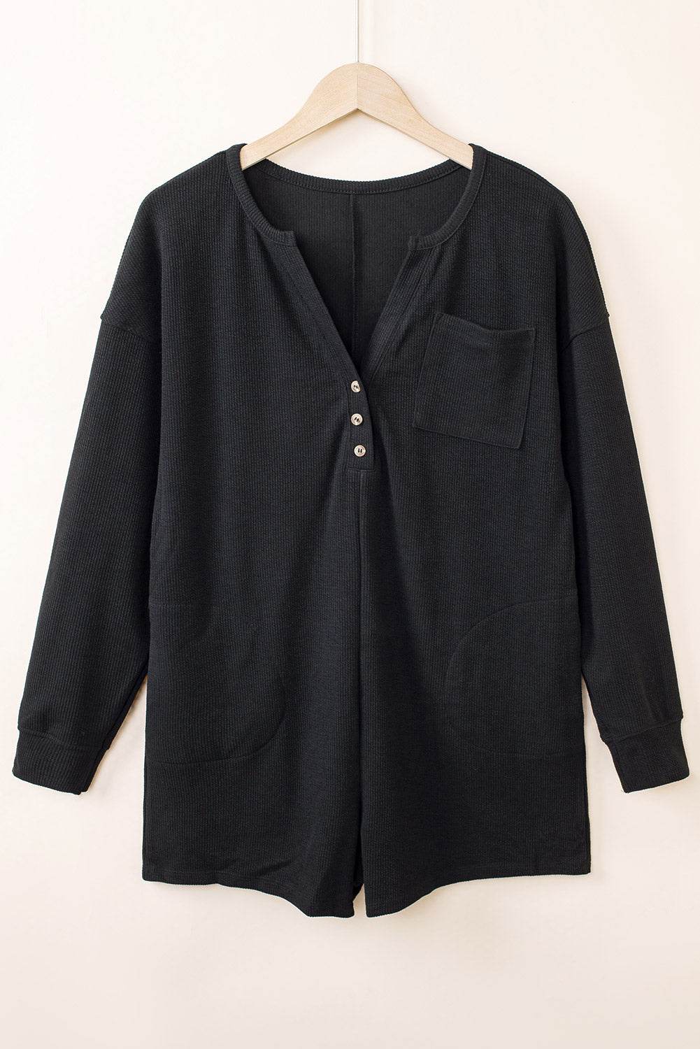 Pattern type: Solid Style: Chic Features: Pocketed, Buttoned Neckline: V-neck Length: Short Sleeve length: Long sleeves Sleeve type: Regular sleeves... Read more