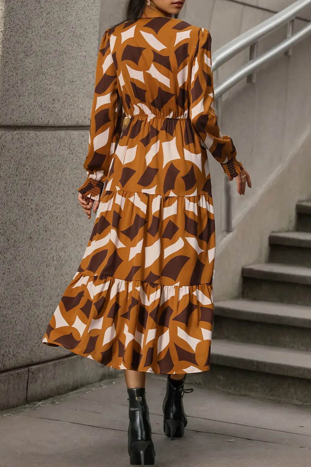 Perfee Printed Tied Pocketed Lantern Sleeve Dress