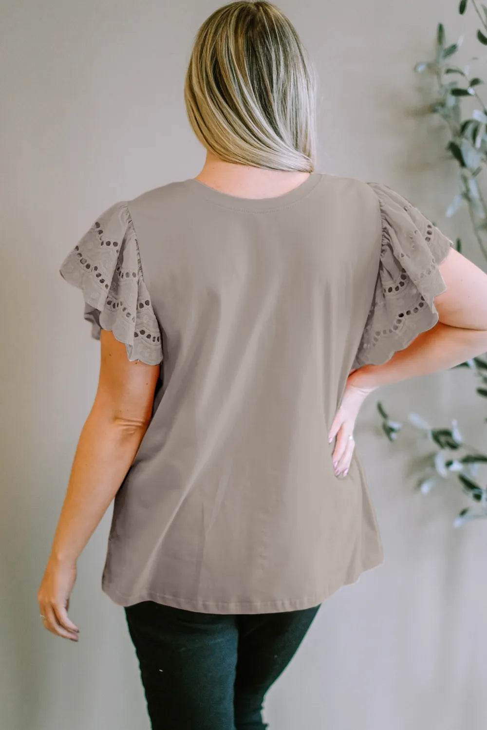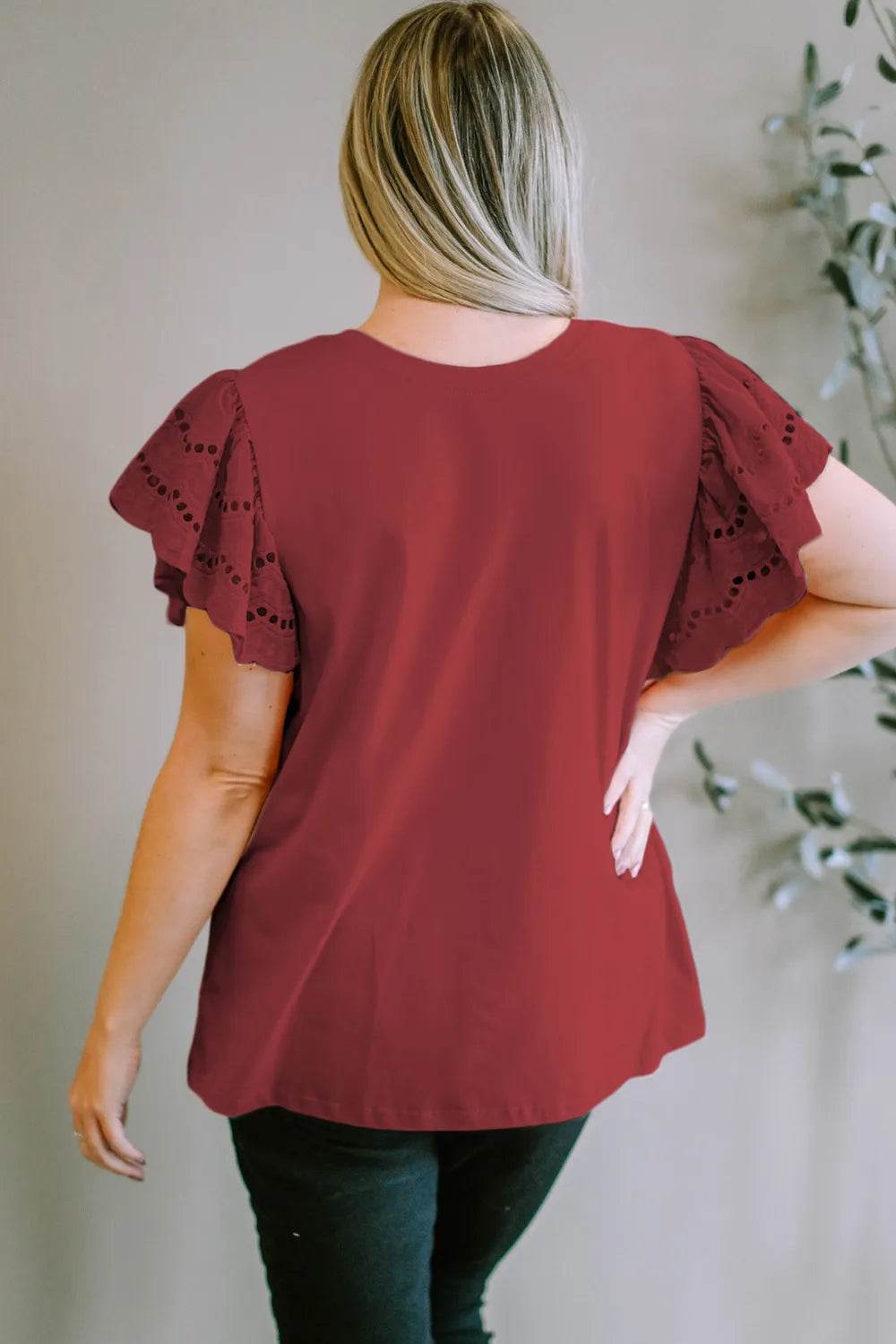 Plus Size Eyelet Round Neck Short Sleeve Blouse