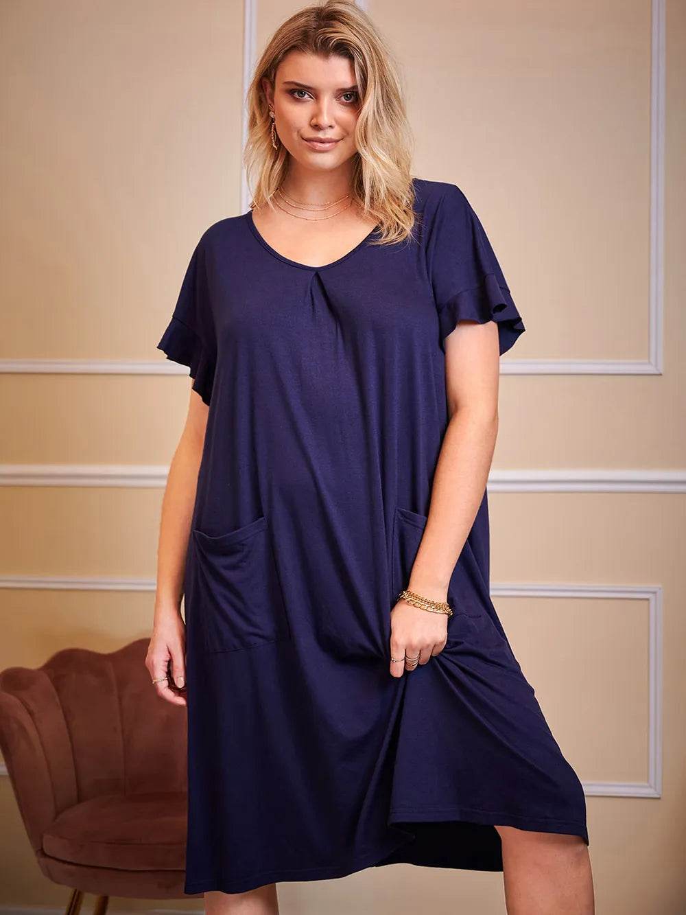 Plus Size Round Neck Short Sleeve Lounge Dress