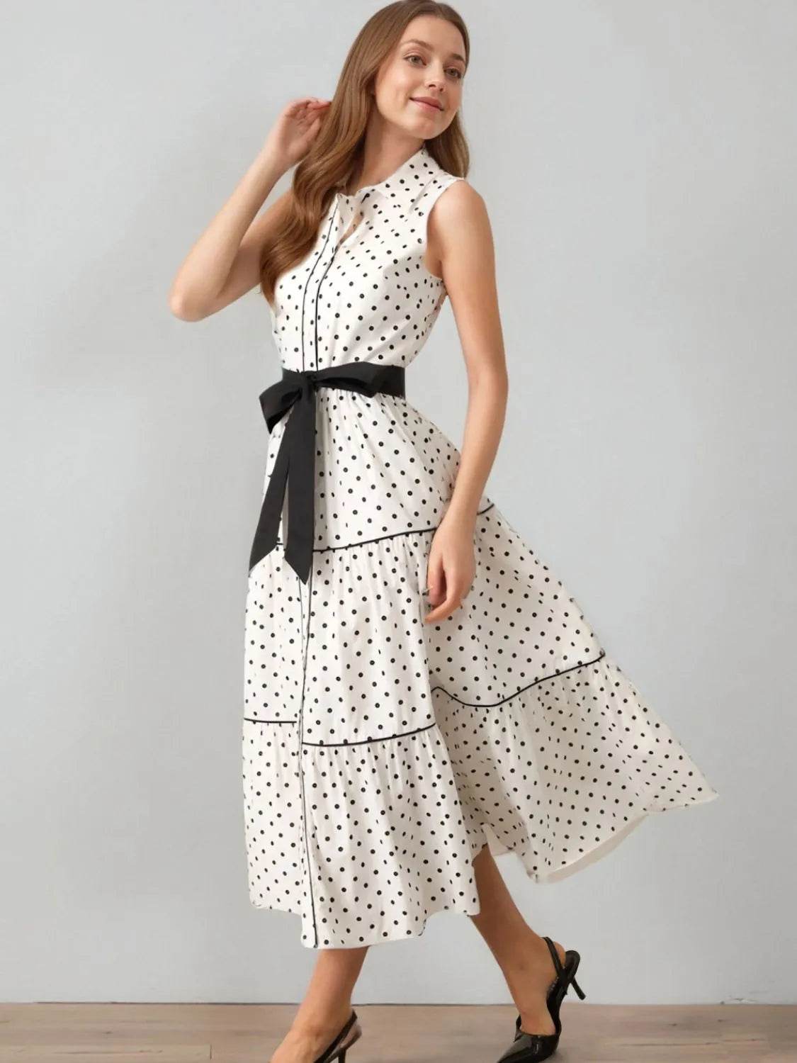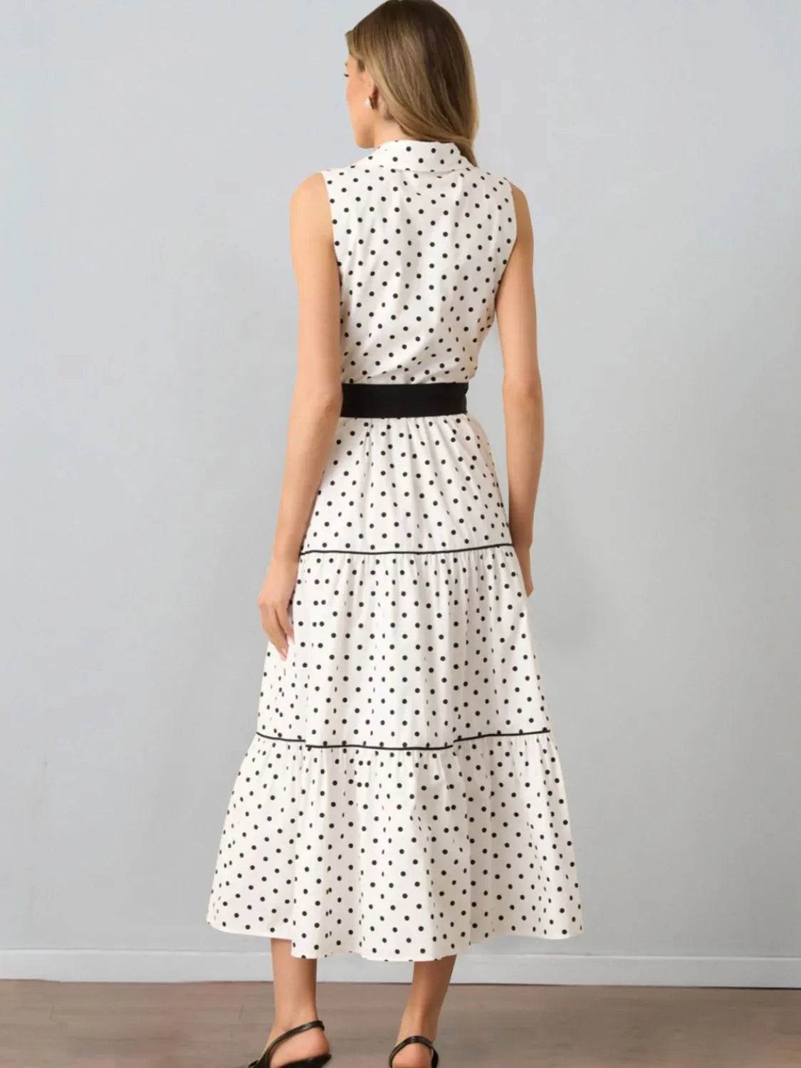 Polka Dot Sleeveless Midi Shirt Dress
