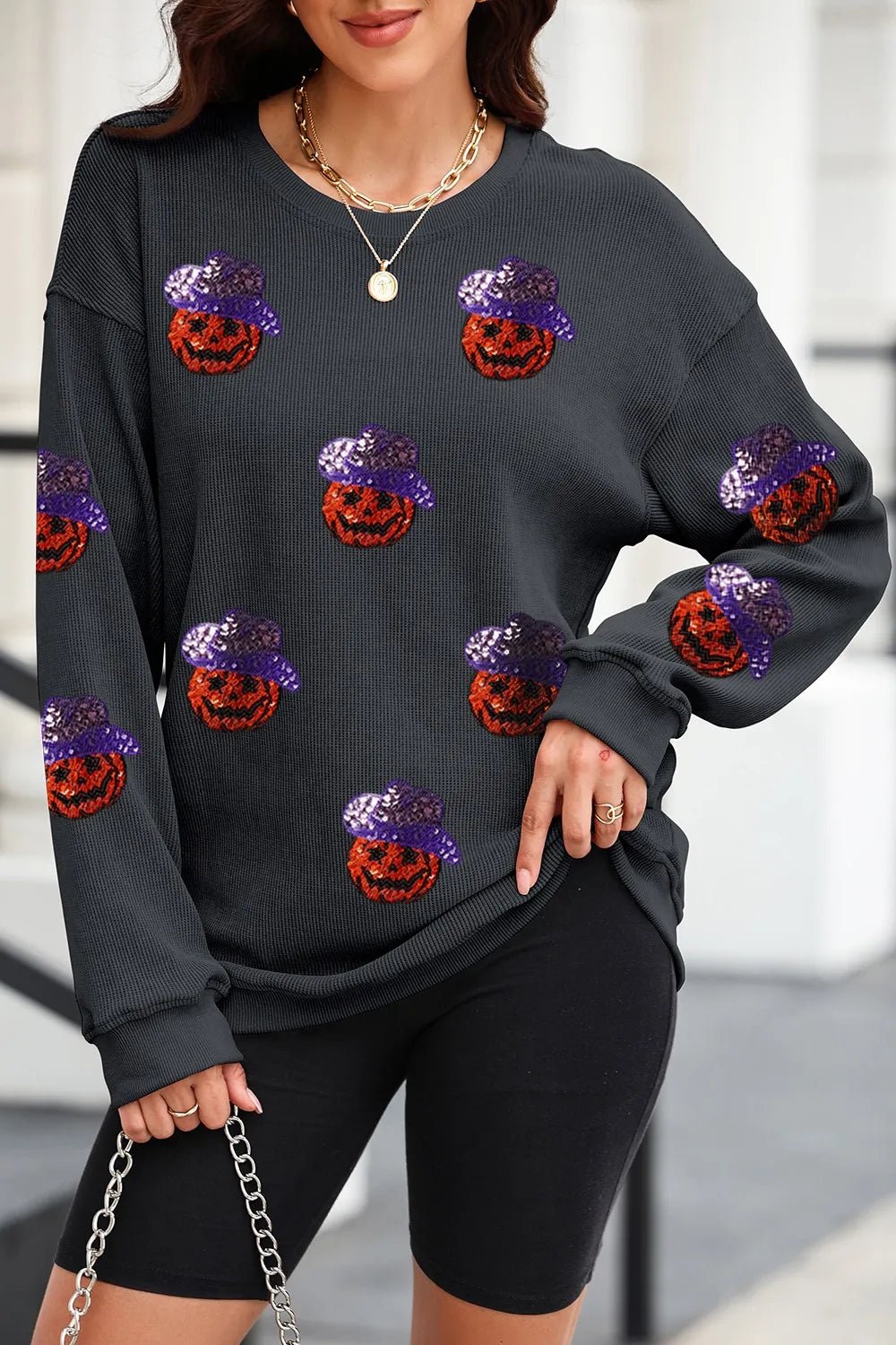 Sequin Pumpkin Long Sleeve Sweatshirt