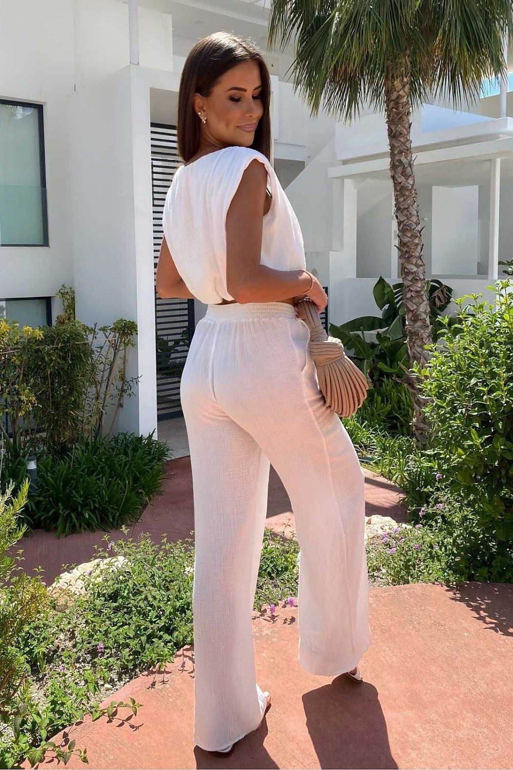 Breathable Muslin Set with Sleeveless Top & Elastic Waist Pants