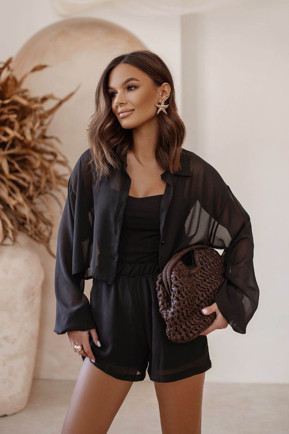 Stylish and functional women's set consisting of three elements: a shirt, a bodysuit, and shorts. The long-sleeved shirt with a... Read more