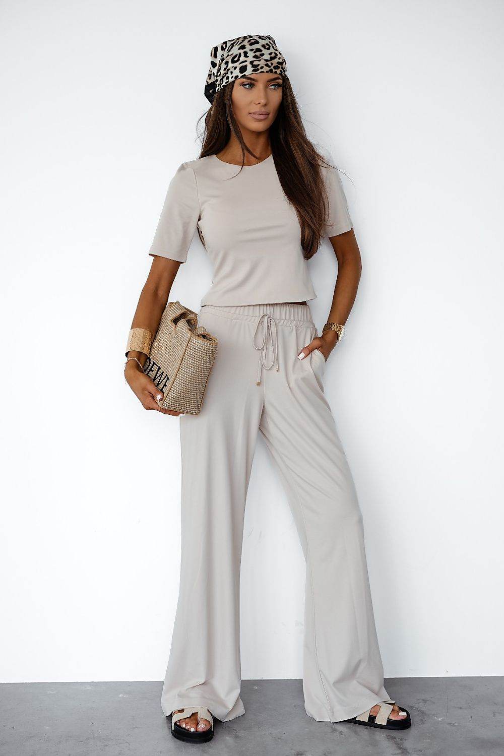 Ladies' Viscose Set with Short-Sleeve Top & Tie-Waist Pants – Soft, Stretchy & Everyday Ready