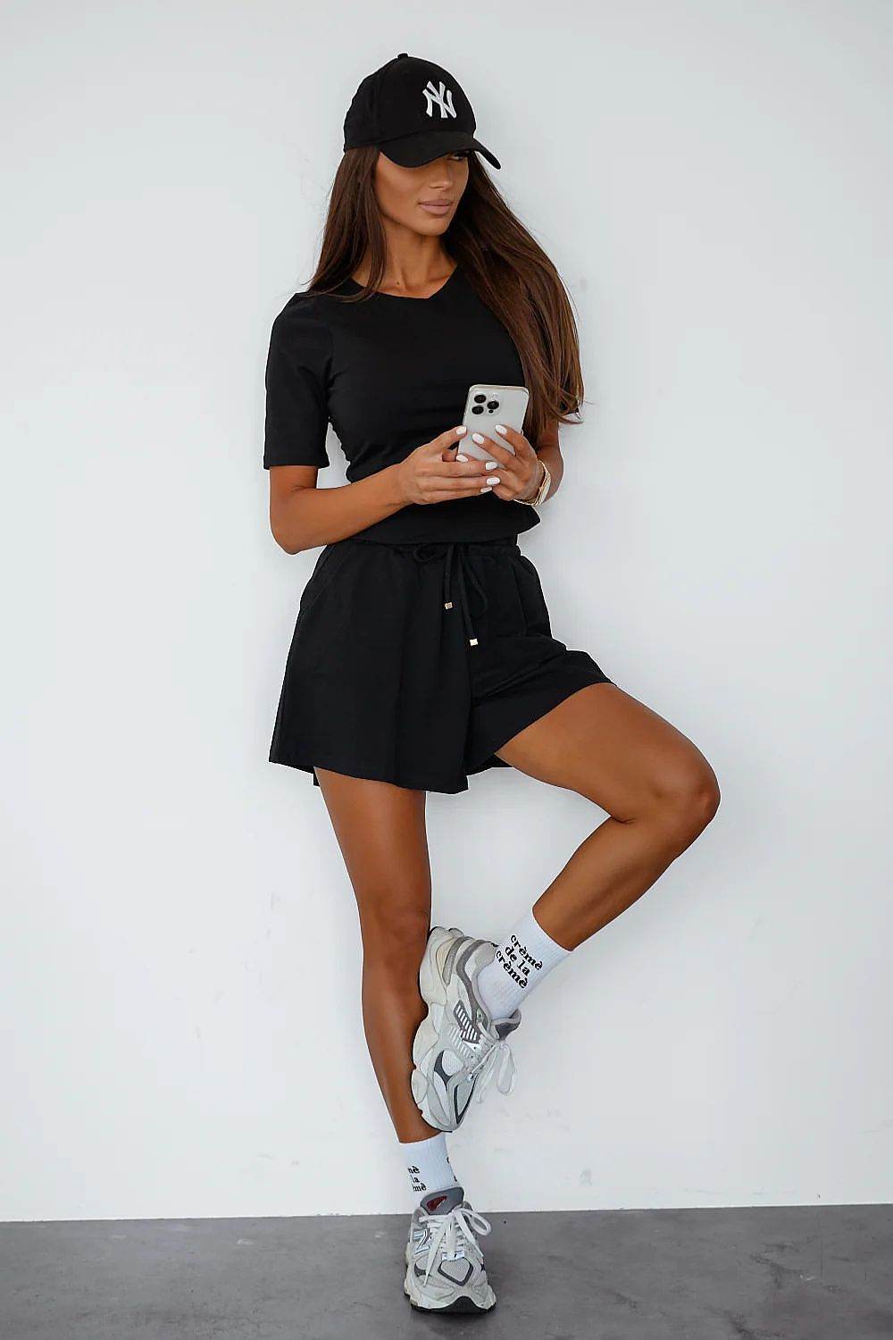 Cotton Ladies' Set with Short-Sleeve Top & Elastic Waist Shorts – Soft & Breathable