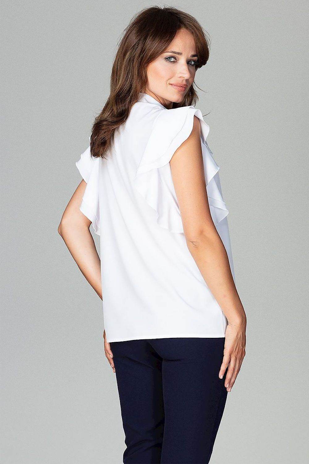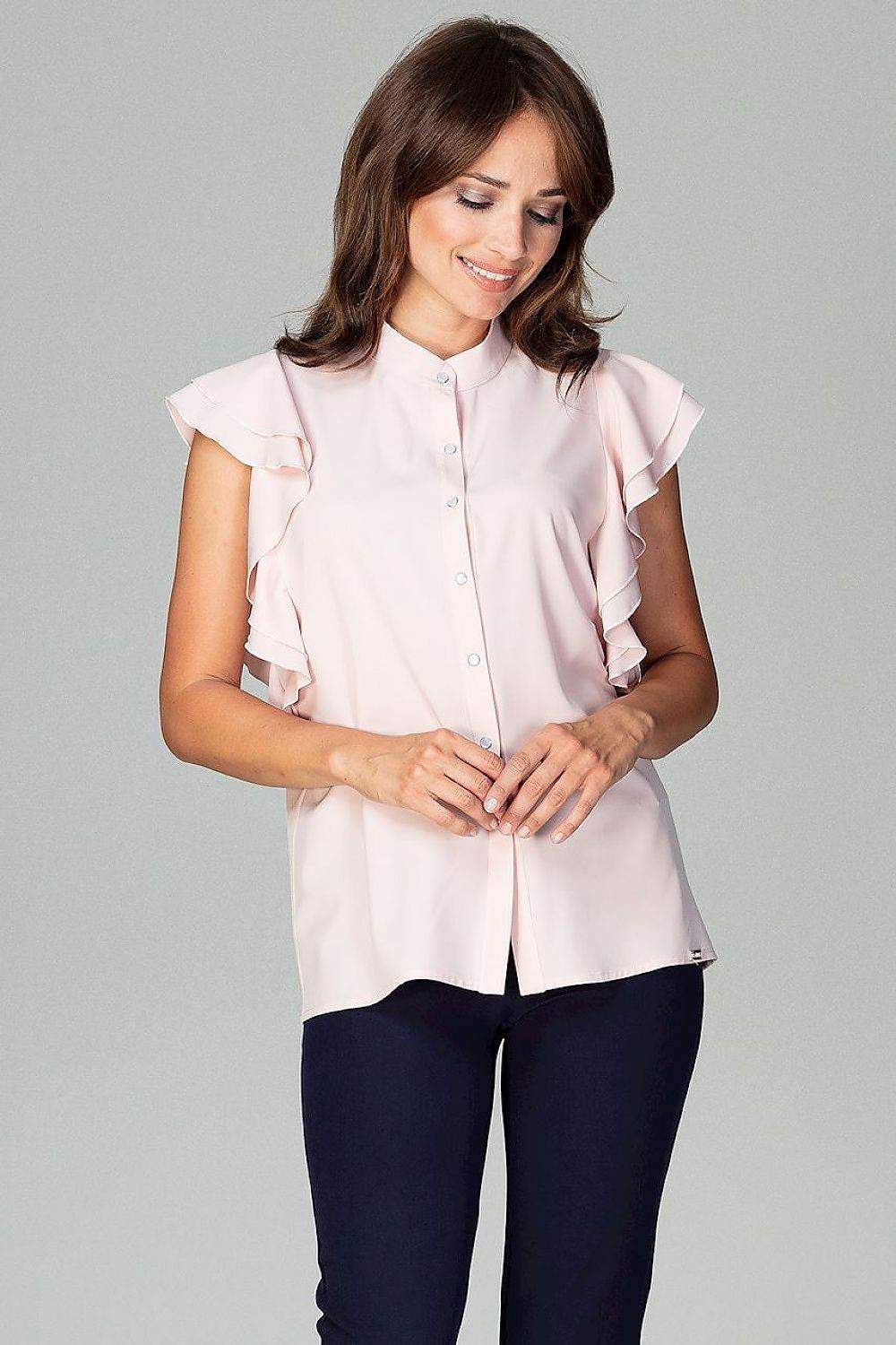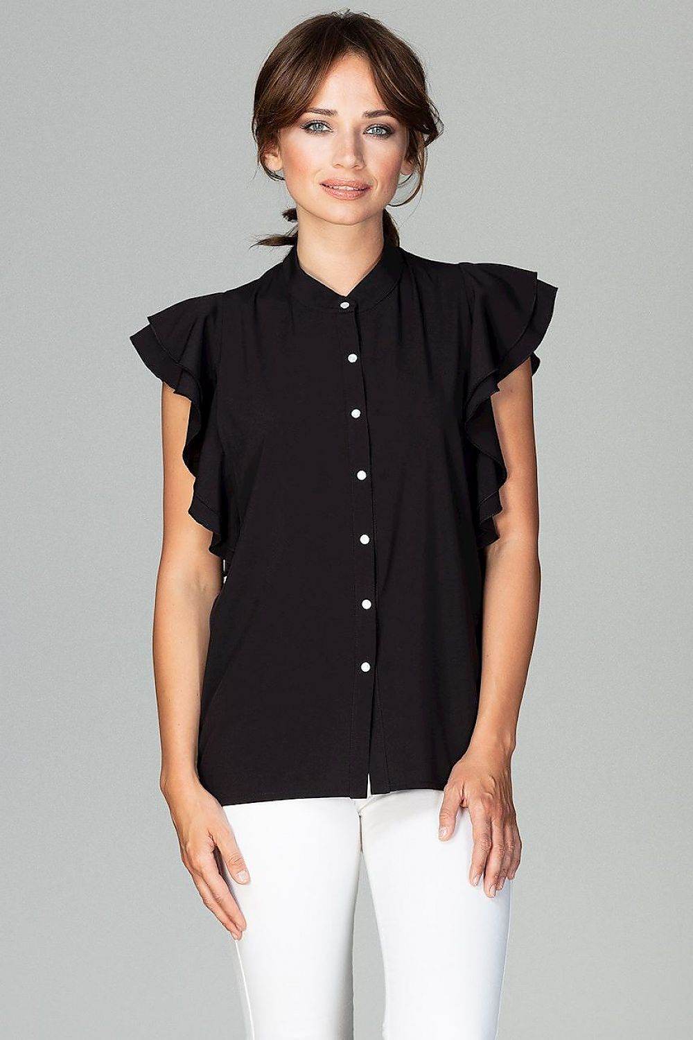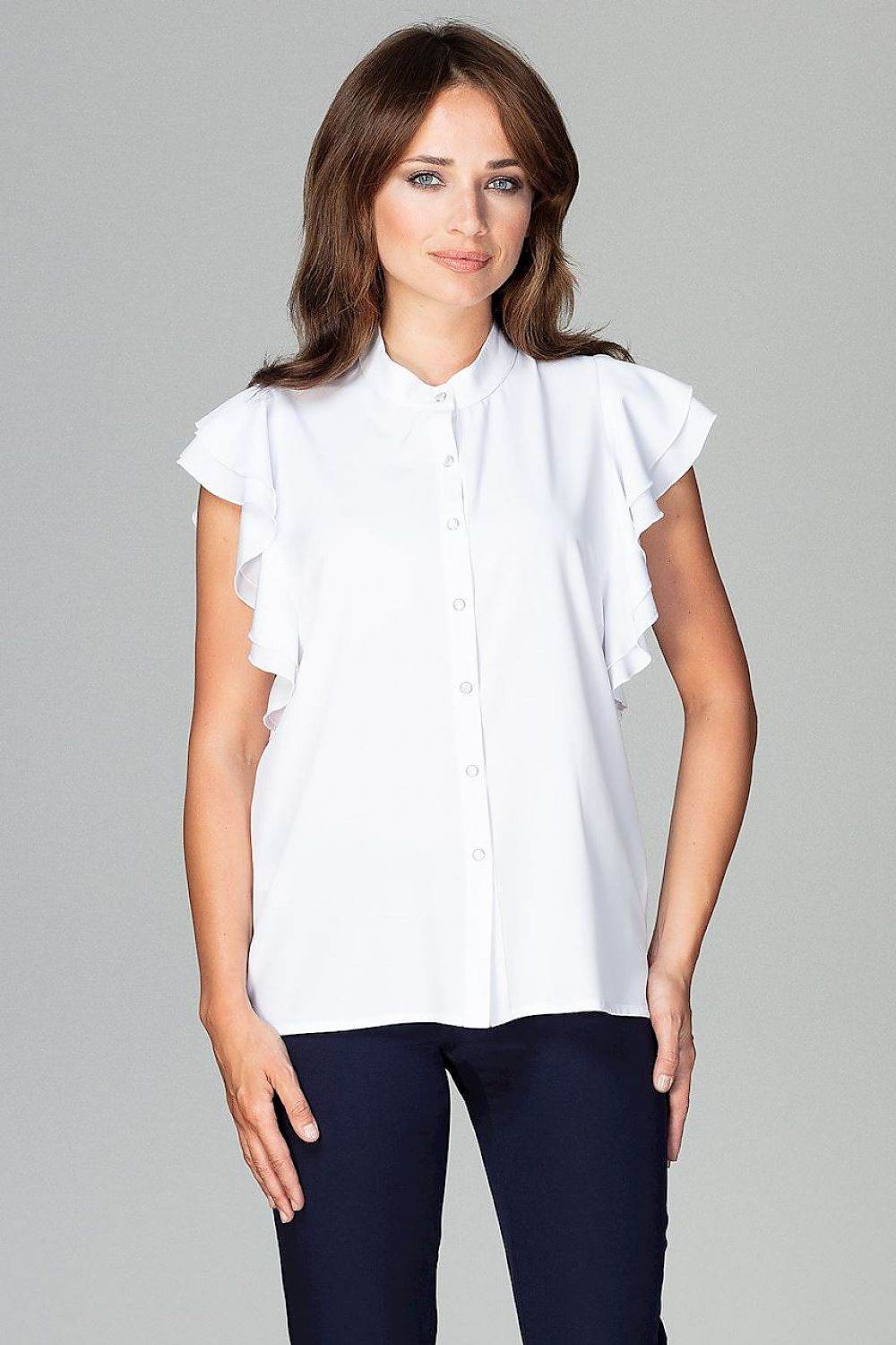 A timeless classic in the best edition. The model has a loose fit, sleeves are finished with frills, fastened with decorative buttons. A shirt that should be a part of every professionally active woman's wardrobe.