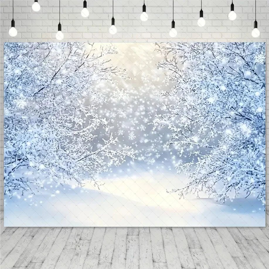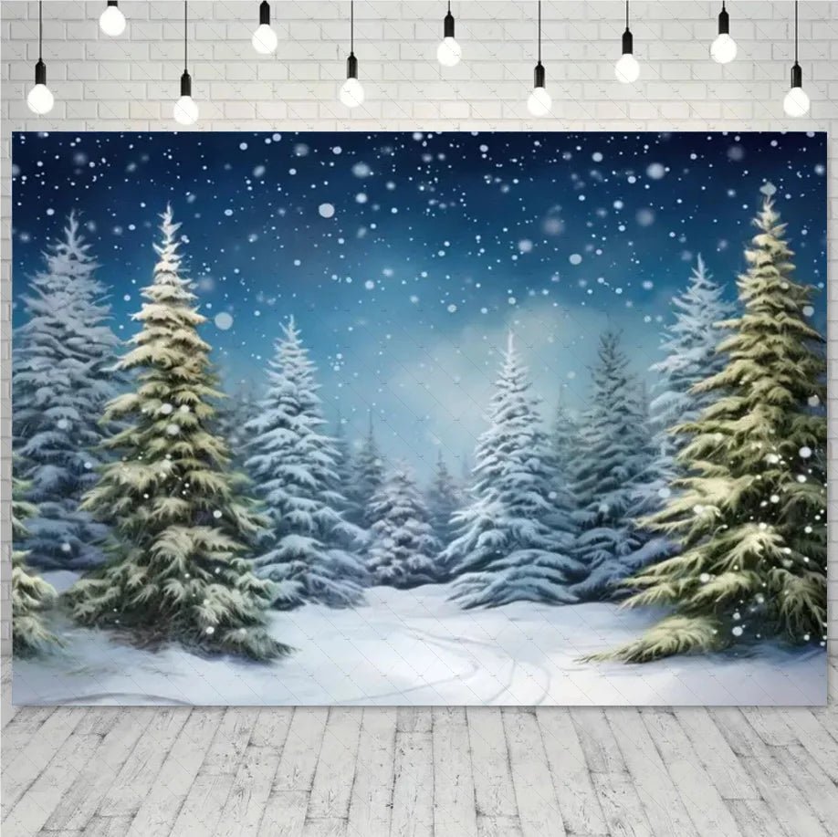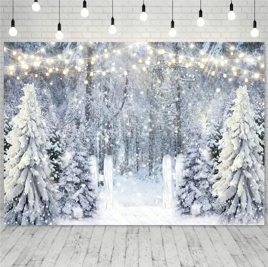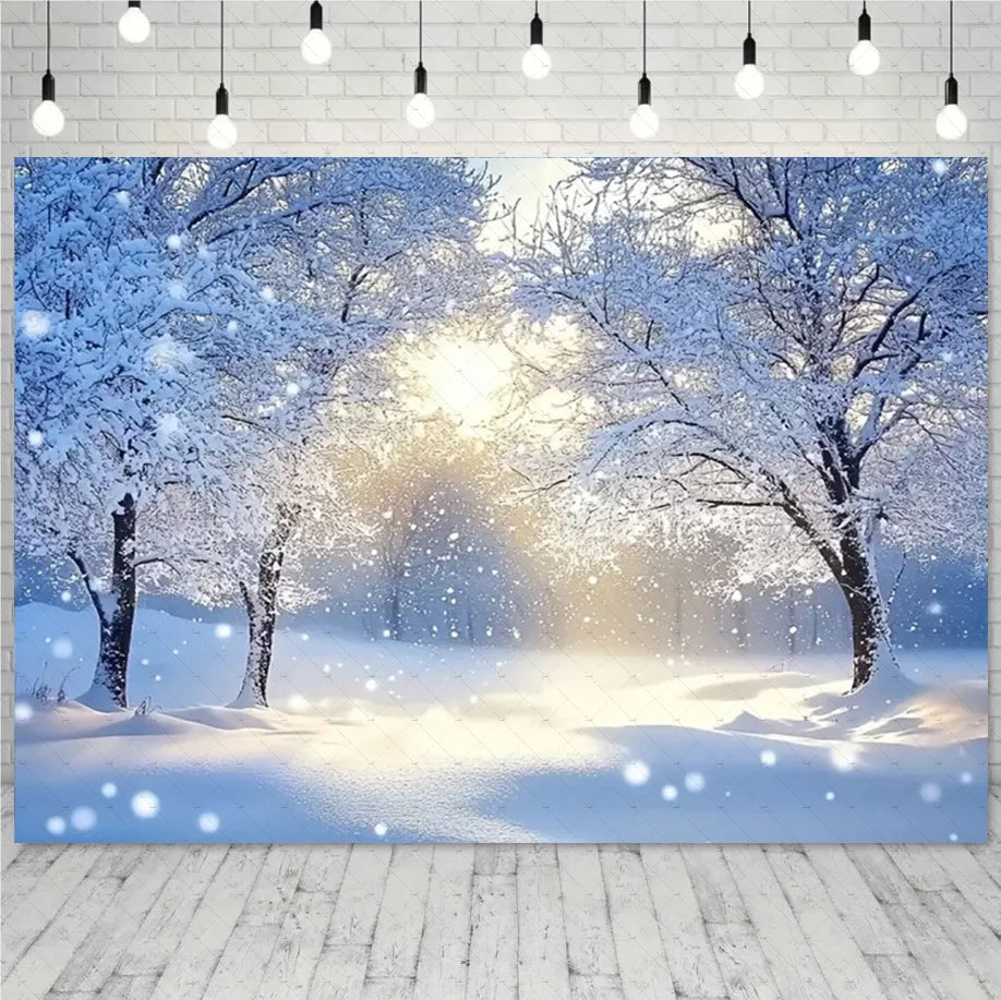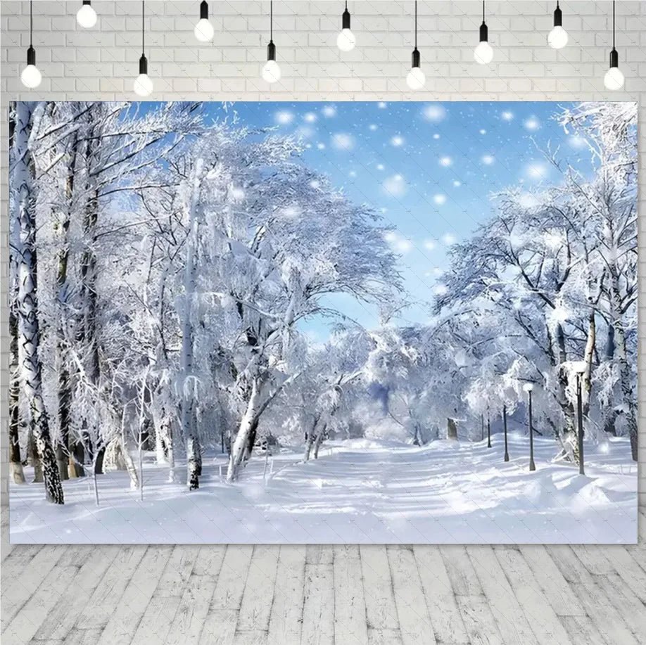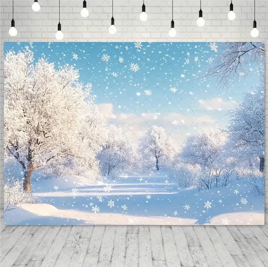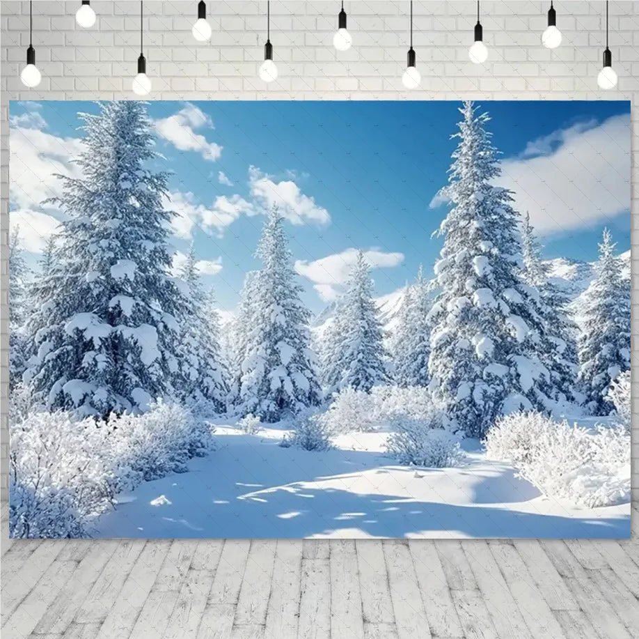Snow Scene White Forest Art Style Backdrop Cloud Photography Background Winter Christmas Party Backdrop Decorations