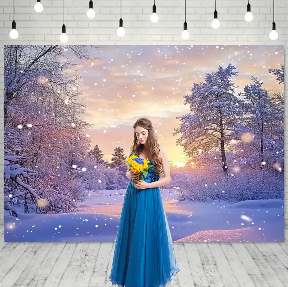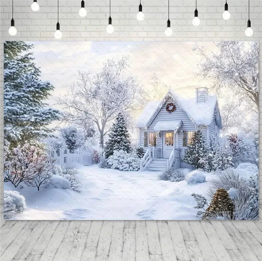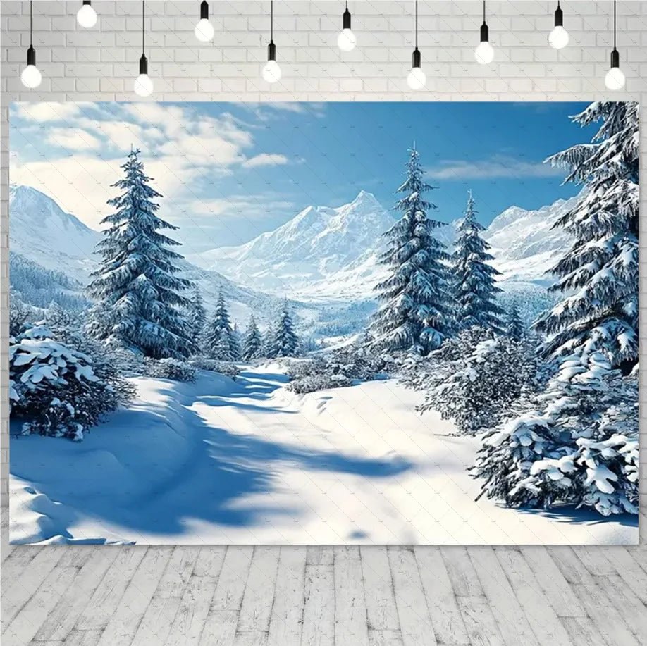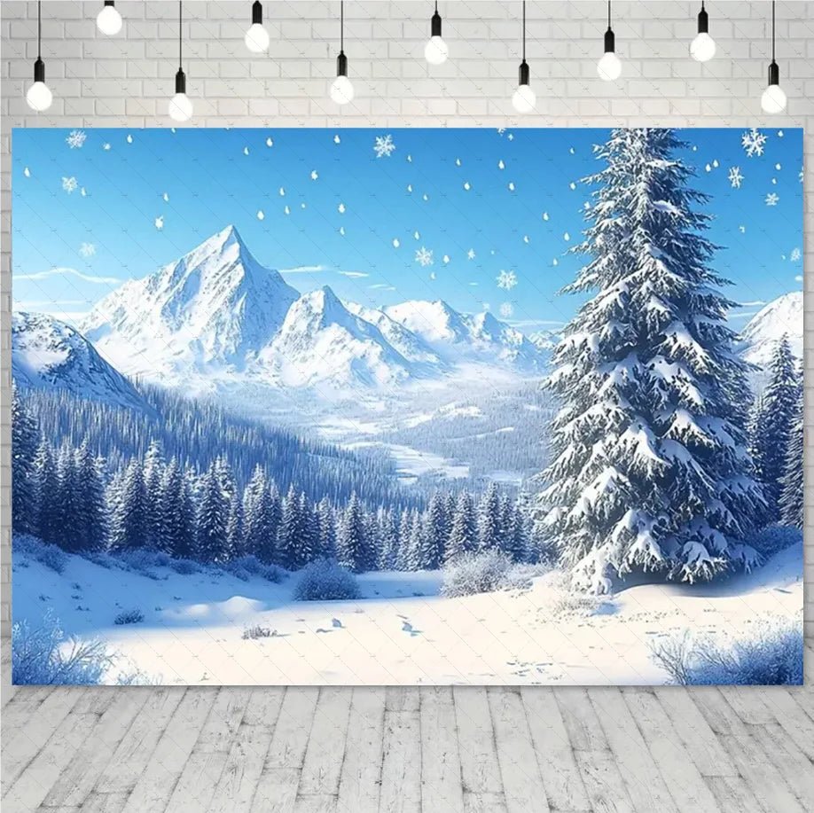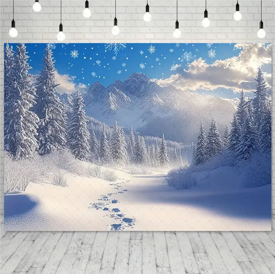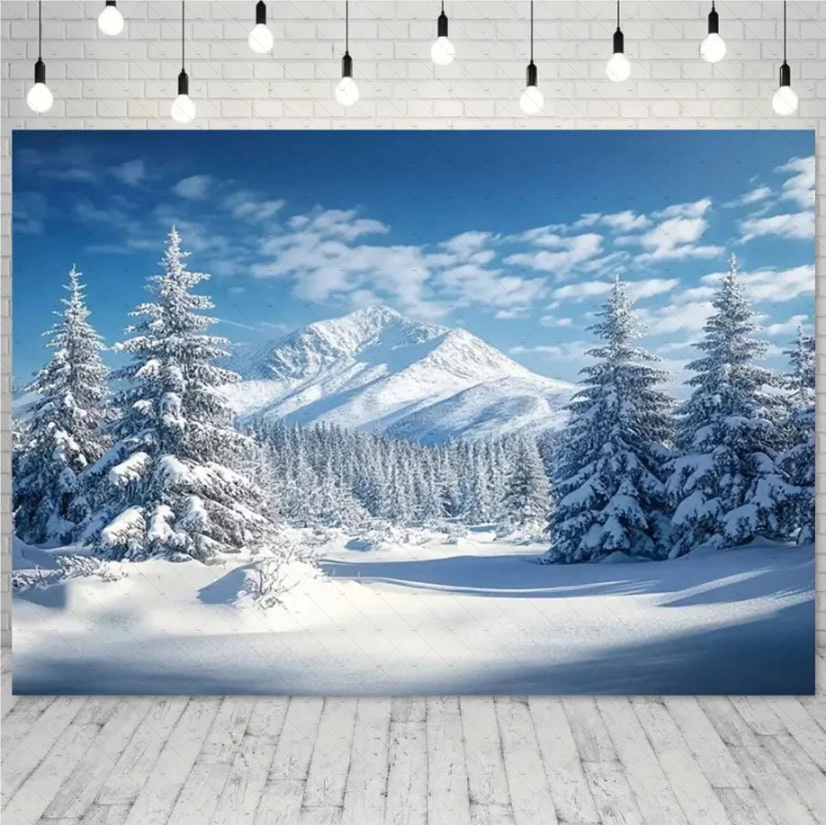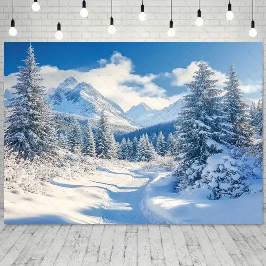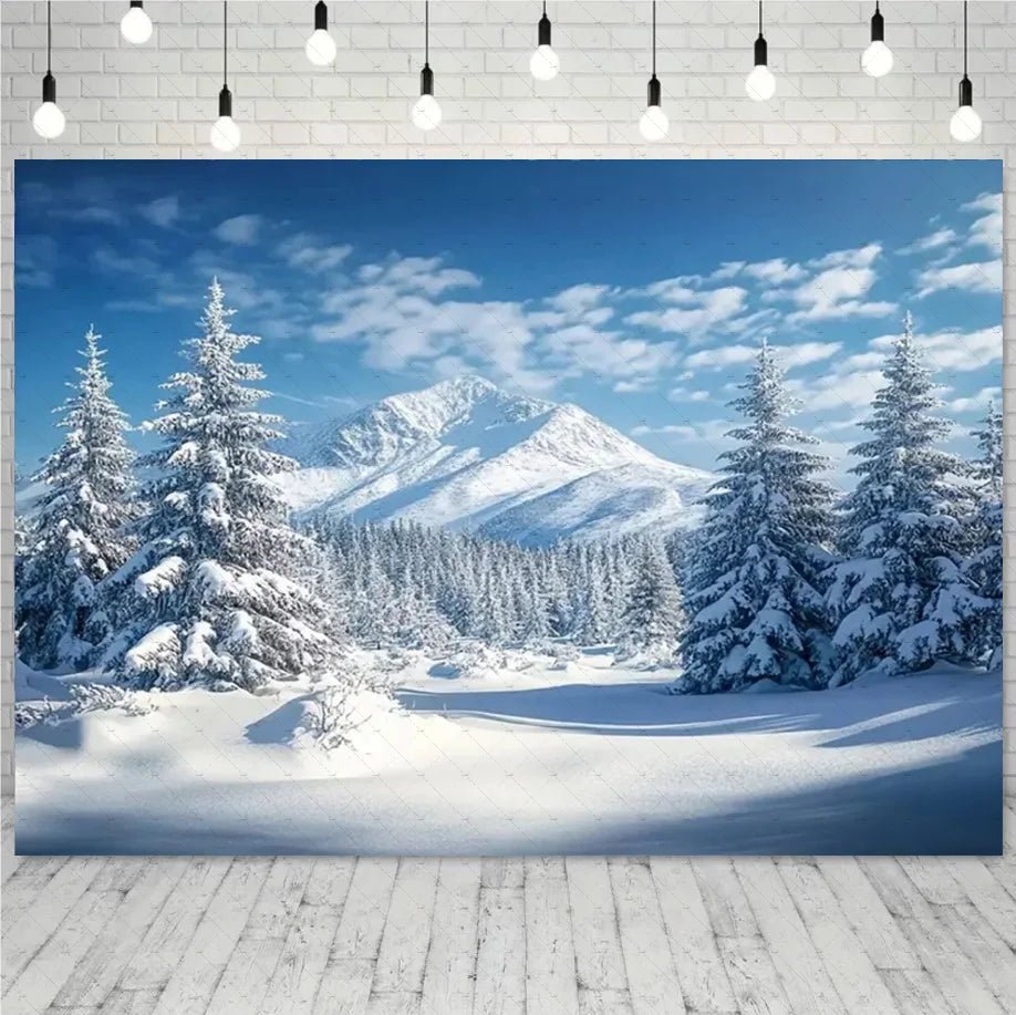 Snow Scene White Forest Art Style Backdrop Cloud Photography Background Winter Christmas Party Backdrop Decorations