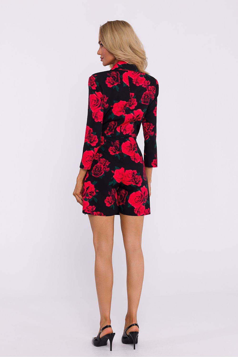 Printed Short Jumpsuit with Jacket Collar and Side Tie