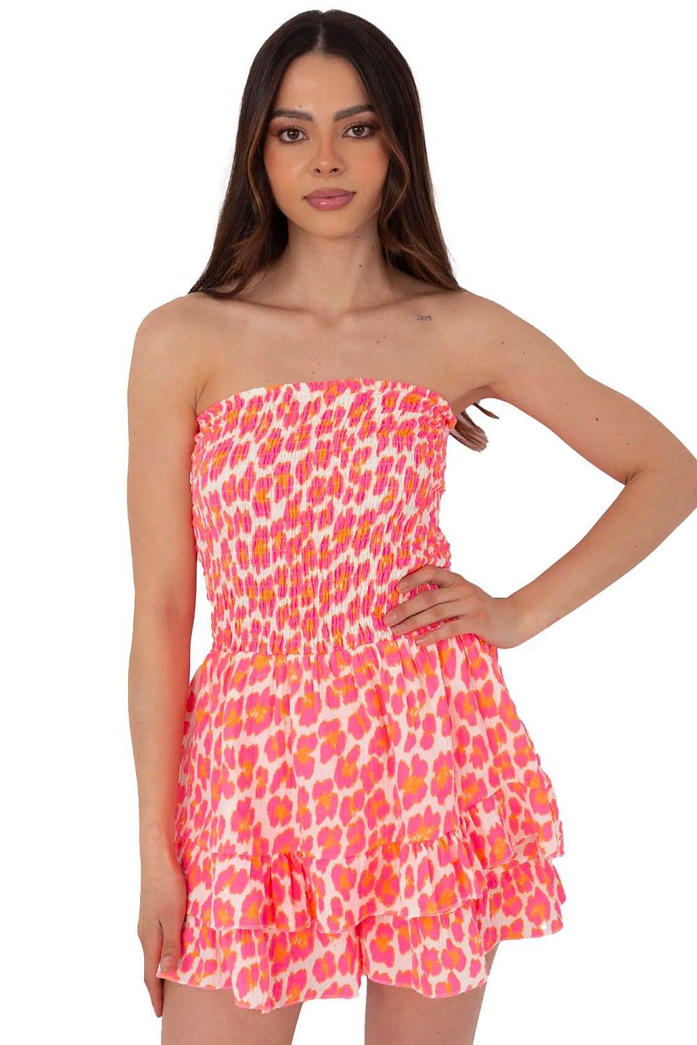 Women’s Casual Sleeveless Cotton Jumpsuit with Ruching & Ruffle Detail