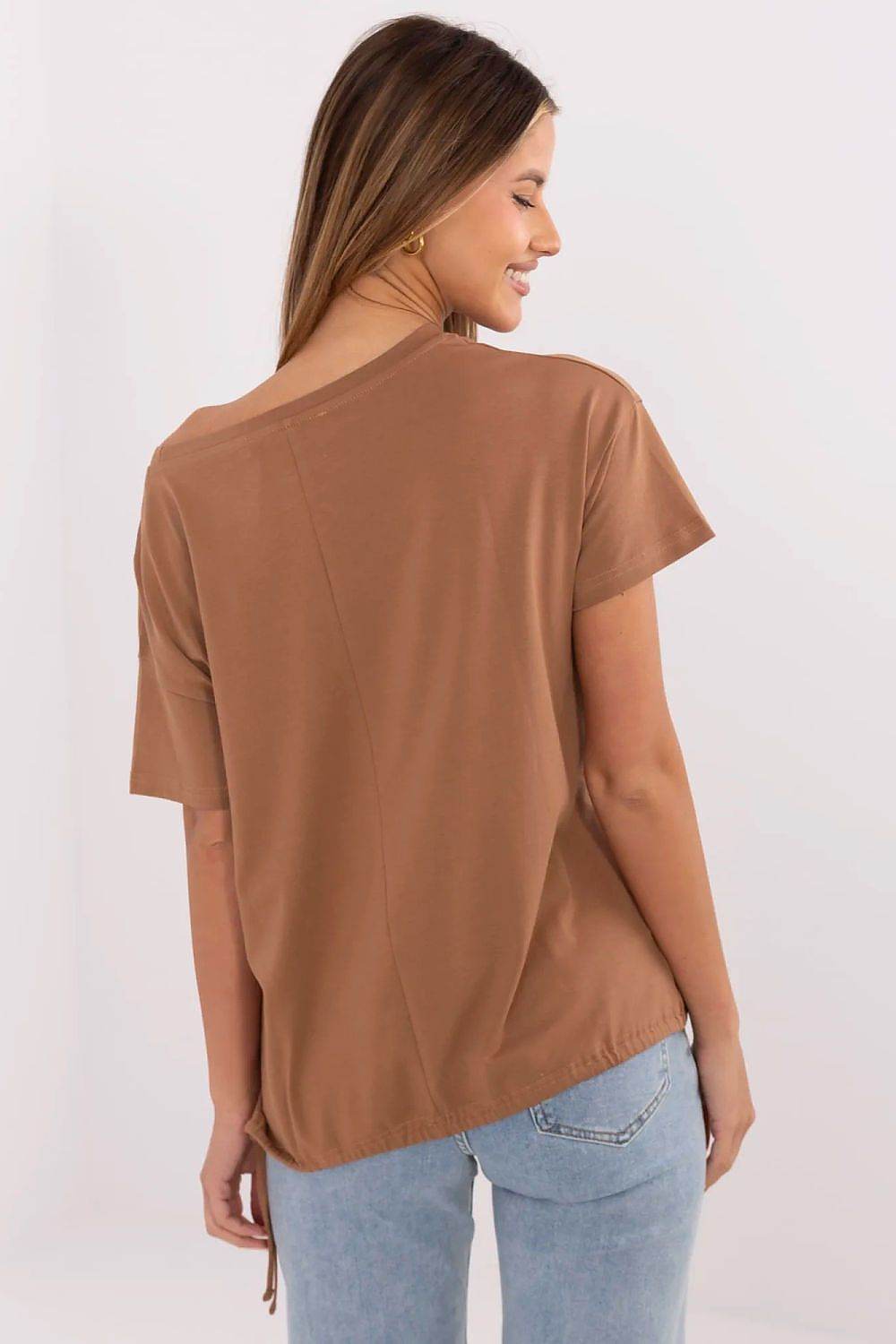 Women's Cotton T-Shirt with Front Print & Side Tie – Casual Fit, Short Sleeves
