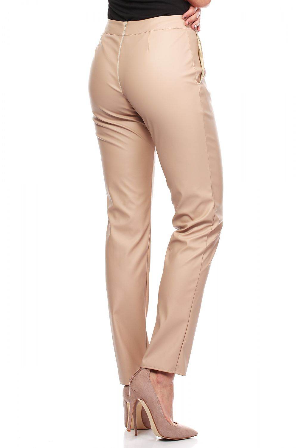 Eco-Leather Tube Pants with Straight Legs and Back Zip