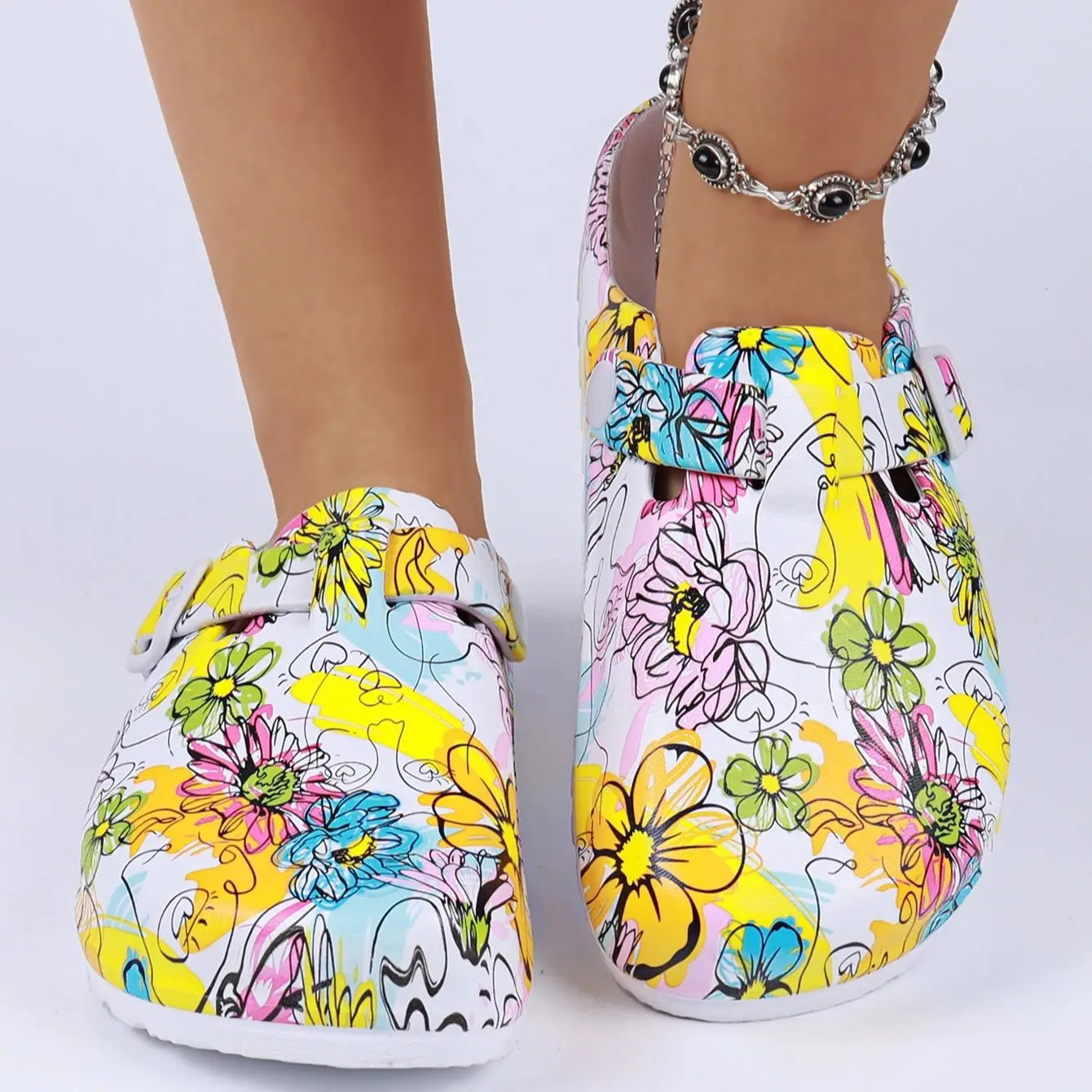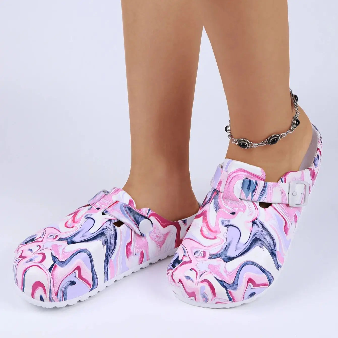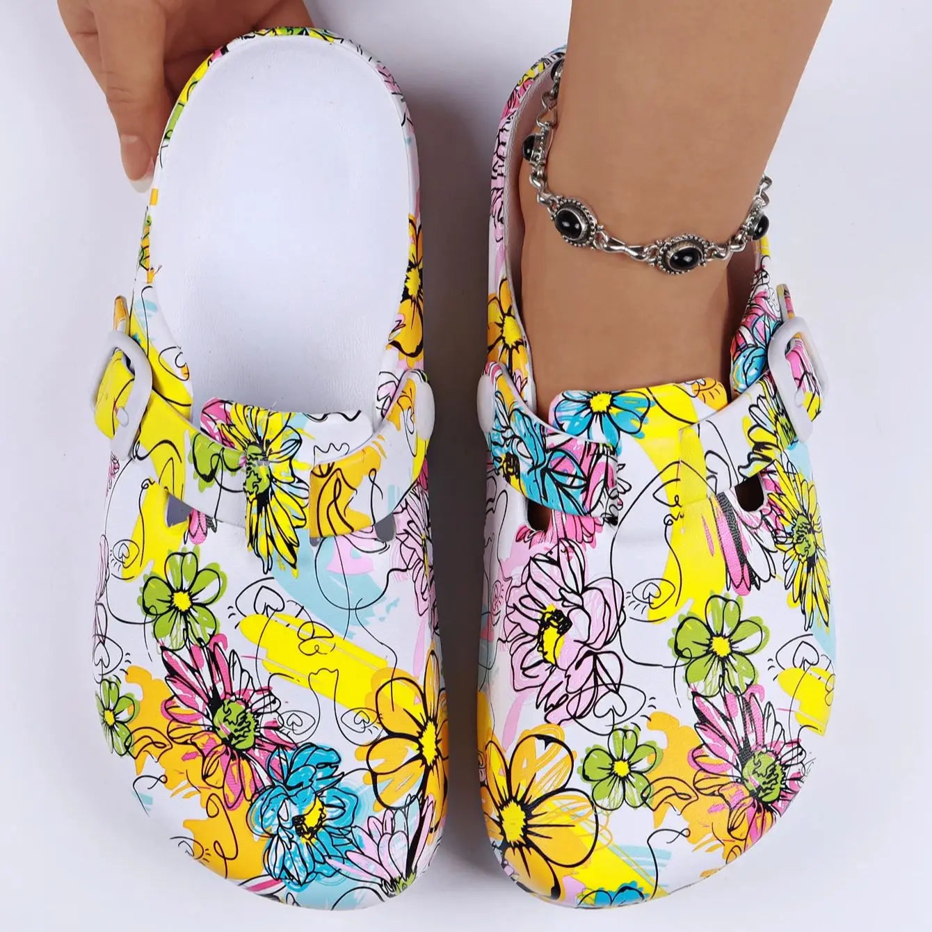 Women's Printed Garden Clogs, Summer Outdoor Sandals, Waterproof Slippers,Adjustable Slides For All Season Wear