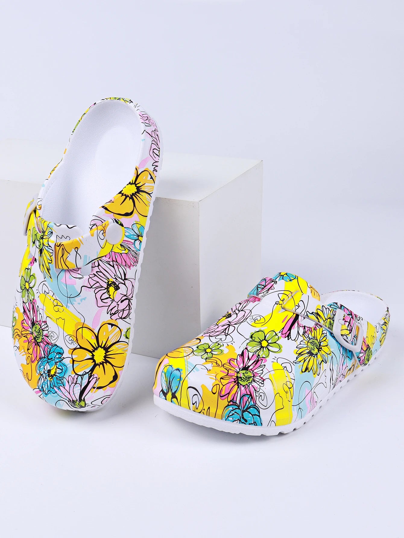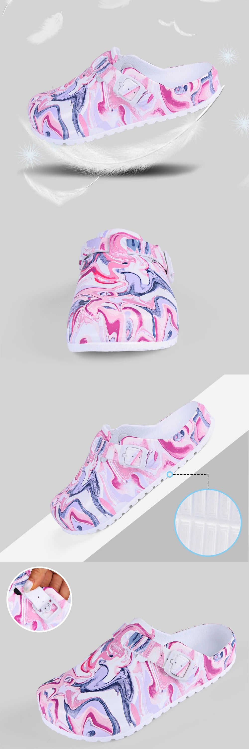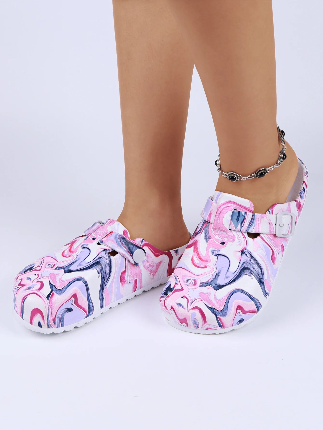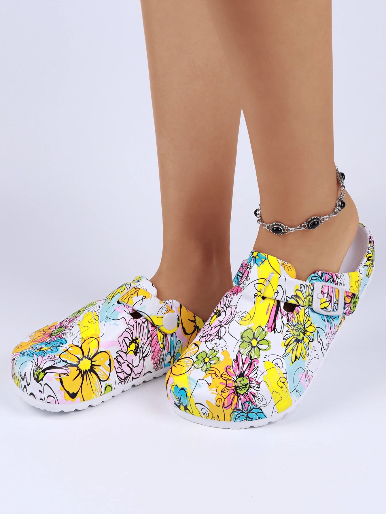 Women's Printed Garden Clogs, Summer Outdoor Sandals, Waterproof Slippers,Adjustable Slides For All Season Wear