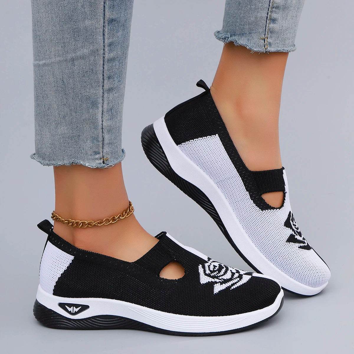 Women's Summer Breathable Mesh Flat Shoes, Women's Shoes, Casual Sneakers Shoes Black and white