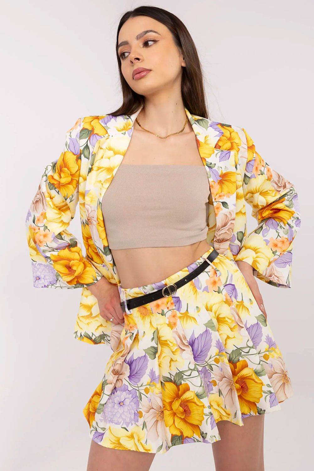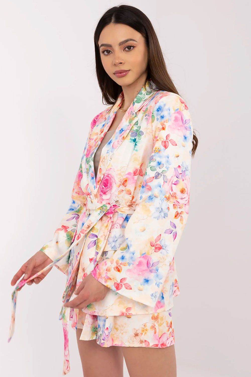 Women's Floral Blazer & High-Waisted Pleated Shorts Set with Tie Belt