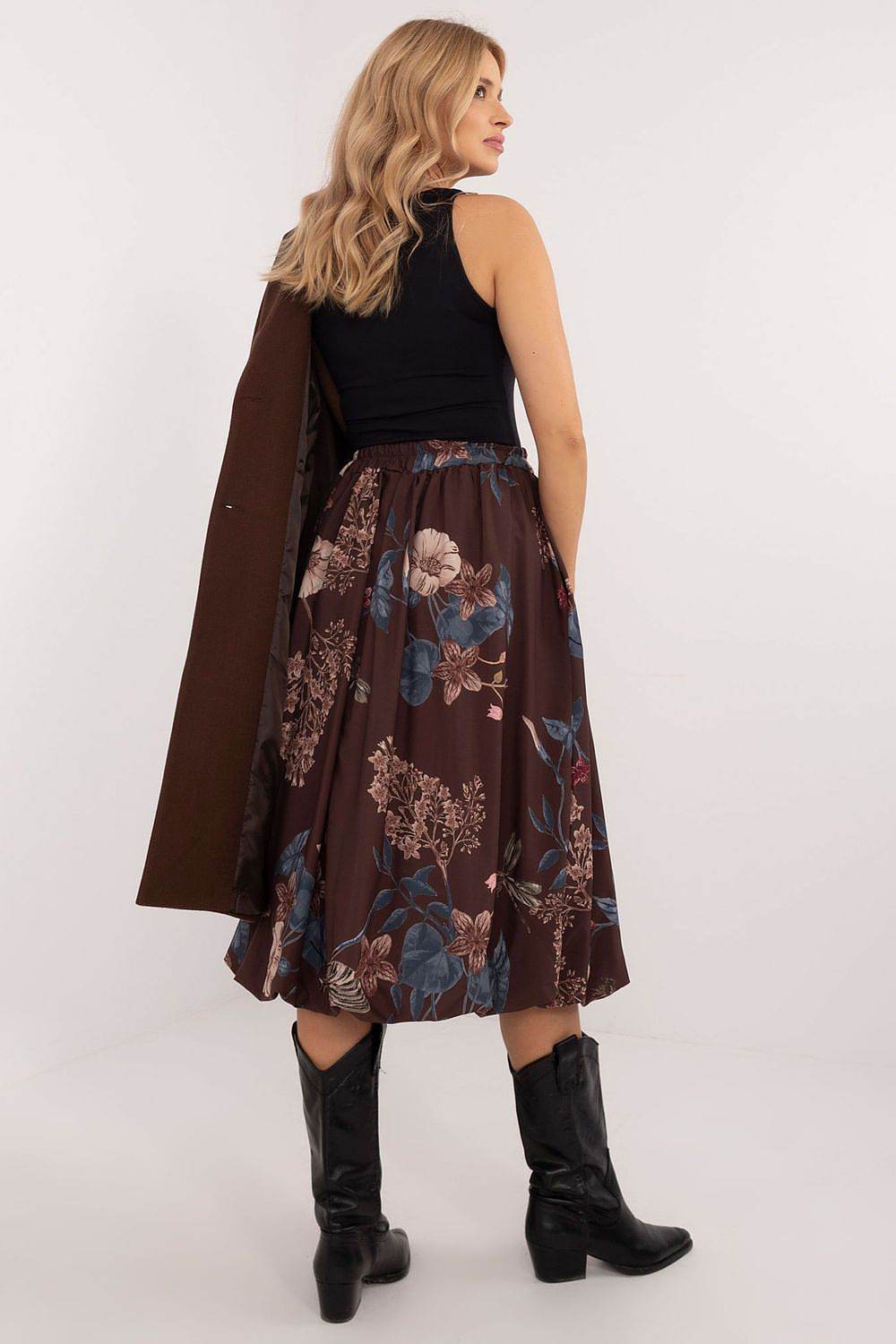 Floral Bomber Midi Skirt with Elastic Waist and Hidden Pockets