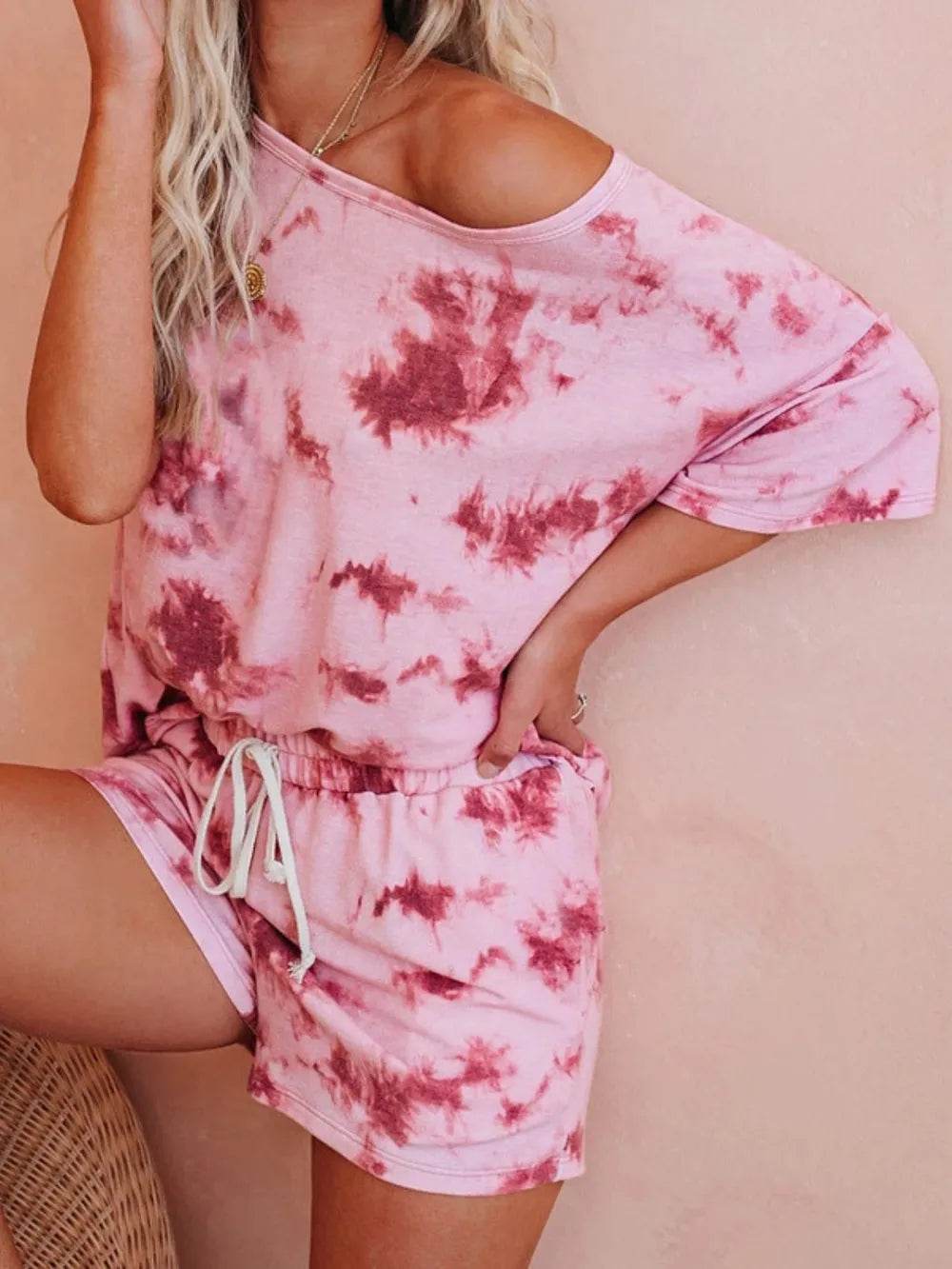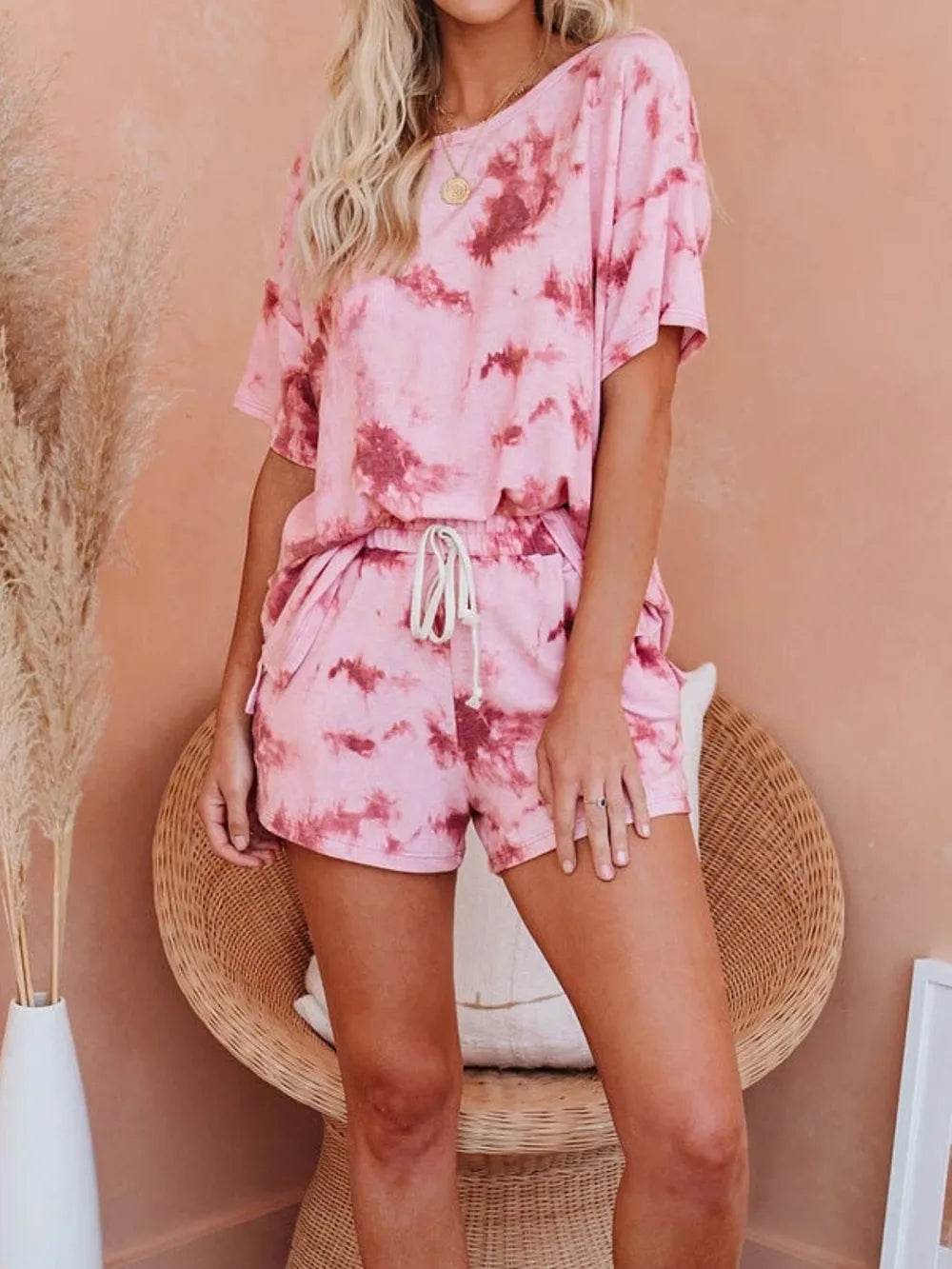 Conjunto de blusa e shorts com estampa tie-dye e meia manga