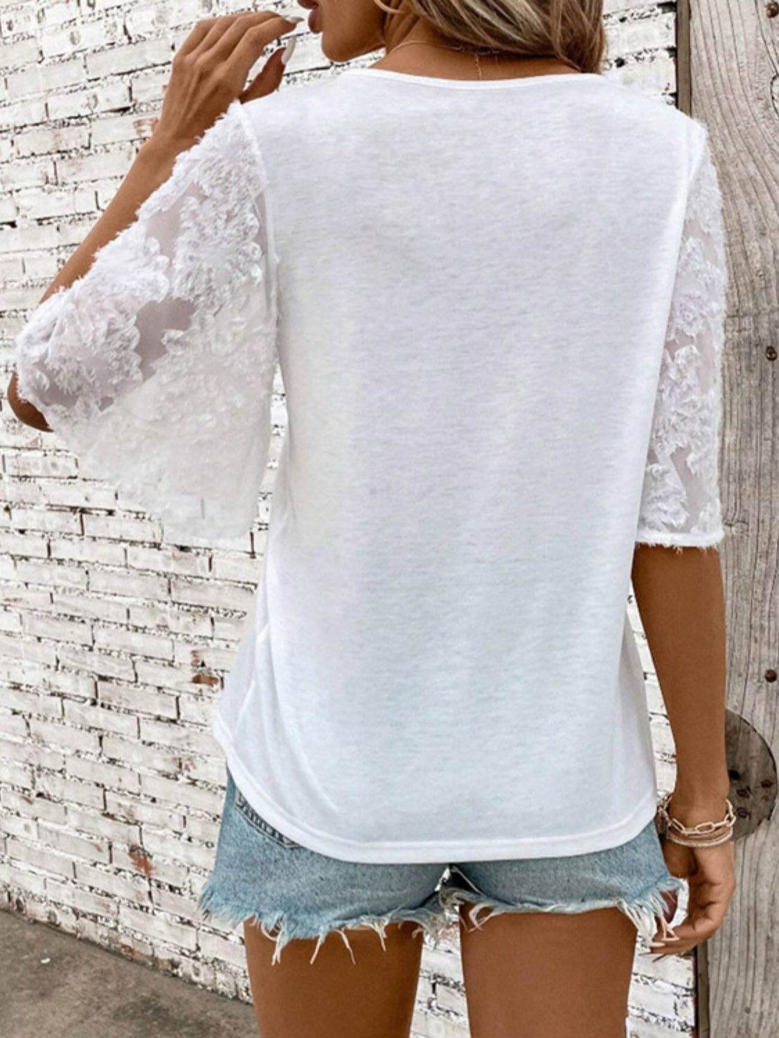 Camiseta decote em V com meia manga